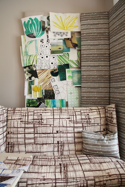 The best part of High Point is getting to meet many of the designers in person. Sisters Susan Hable Smith and Katherine Hable Sweeney of Hable Construction have collaborated on a fabric line for Hickory Chair and created a little artist's studio in the showroom. Not only do I love their fabric designers but their amazing mood boards that were also located as soon as you walked in the front door.